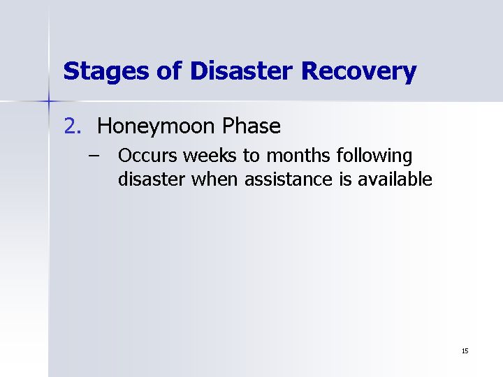 Stages of Disaster Recovery: Honeymoon Phase