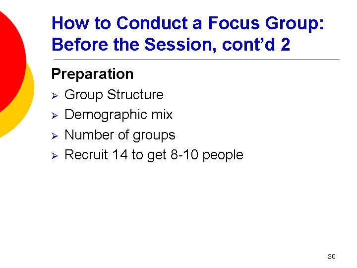 How to Conduct a Focus Group: Before the Session, cont'd 4