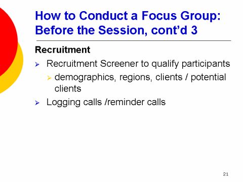 How to Conduct a Focus Group: Before the Session, cont'd 3