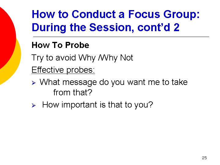 How to Conduct a Focus Group: During the Session, cont'd 2