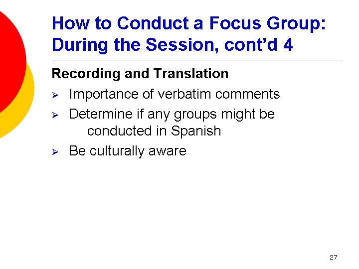 How to Conduct a Focus Group:<br />During the Session, cont'd 4