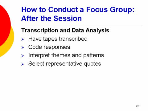 How to Conduct a Focus Group: After the Session, cont'd 2