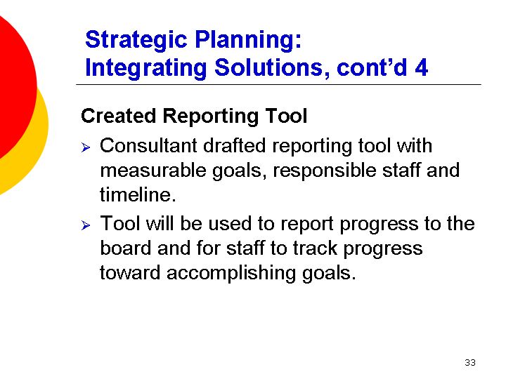 <br /><br />Strategic Planning: <br />Integrating Solutions, cont'd 4