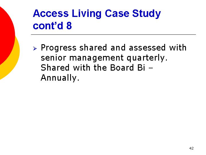 Progress shared and assessed with senior management quarterly. Shared with the Board Bi - Annually.