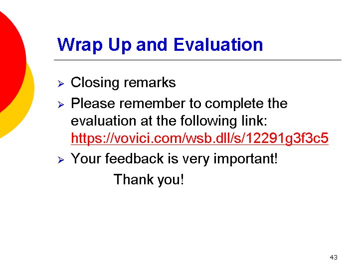 Please remember to complete the evaluation at the following link: https://vovici.com/wsb.dll/s/12291g3f3c5