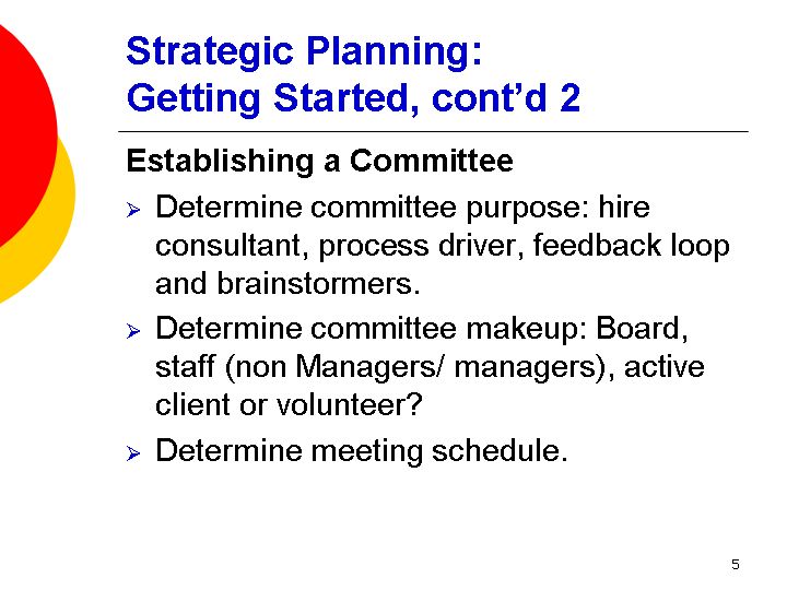 - Determine committee purpose: hire consultant, process driver, feedback loop and brainstormers.