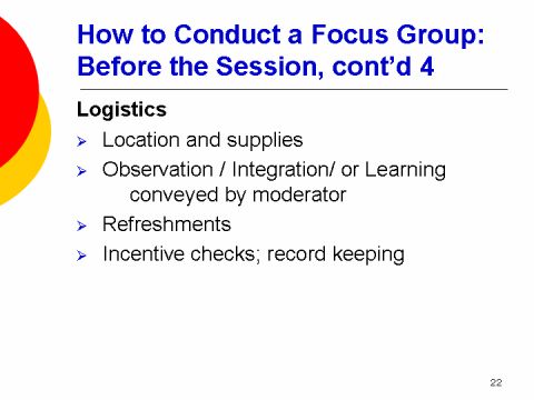 How to Conduct a Focus Group: Before the Session, cont'd 4