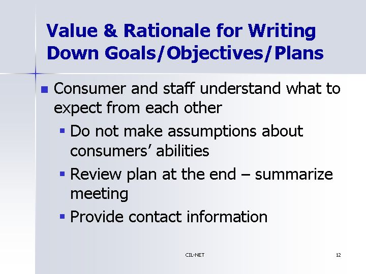 Value & Rationale for Writing Down Goals/Objectives/Plans