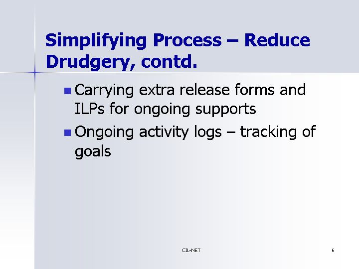 Simplifying Process - Reduce Drudgery, contd.