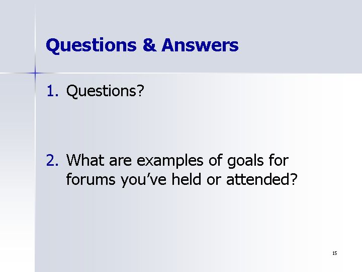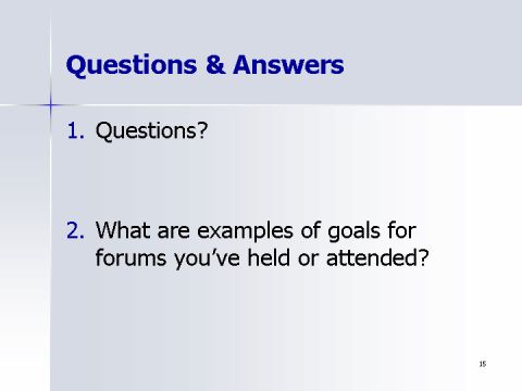 - What are examples of goals for forums you've held or attended?