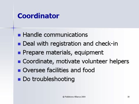 Coordinate, motivate volunteer helpers