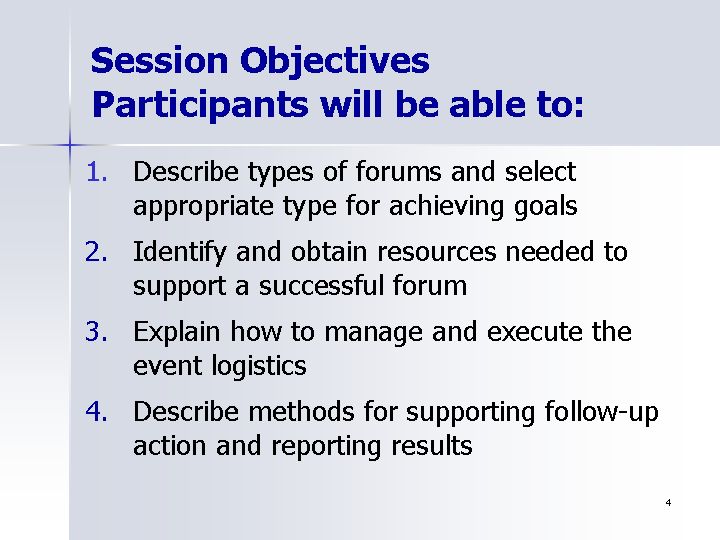 Session Objectives<br />Participants will be able to:
