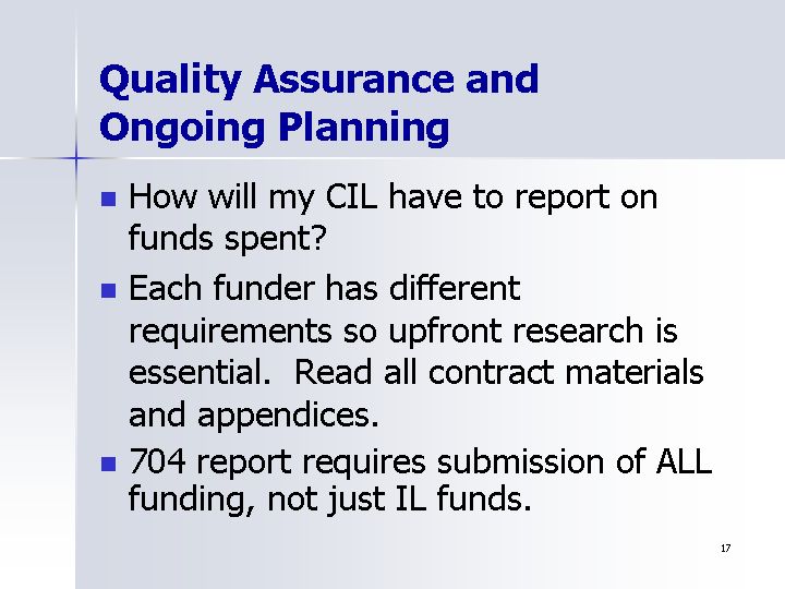 - 704 report requires submission of ALL funding, not just IL funds.