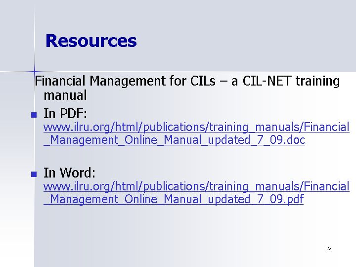 - In PDF: www.ilru.org/html/publications/training_manuals/Financial_Management_Online_Manual_updated_7_09.doc