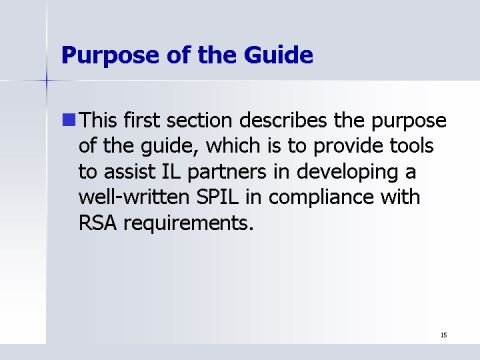 - This first section describes the purpose of the guide, which is to provide tools to assist IL partners in developing a well-written SPIL in compliance with RSA requirements.