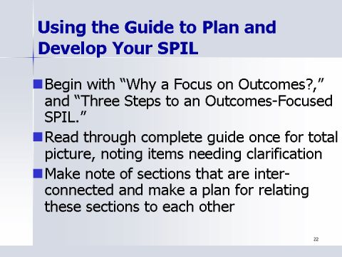 - Begin with "Why a Focus on Outcomes?," and "Three Steps to an Outcomes-Focused SPIL."