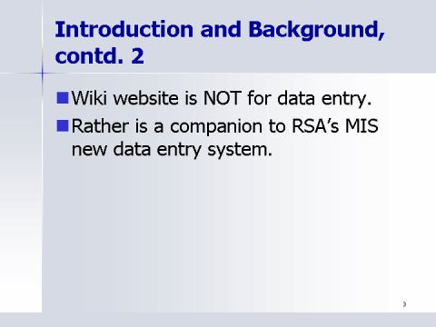 Rather is a companion to RSA's MIS new data entry system.