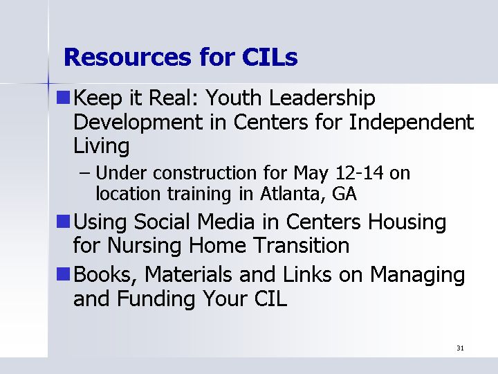 - Keep it Real: Youth Leadership Development in Centers for Independent Living