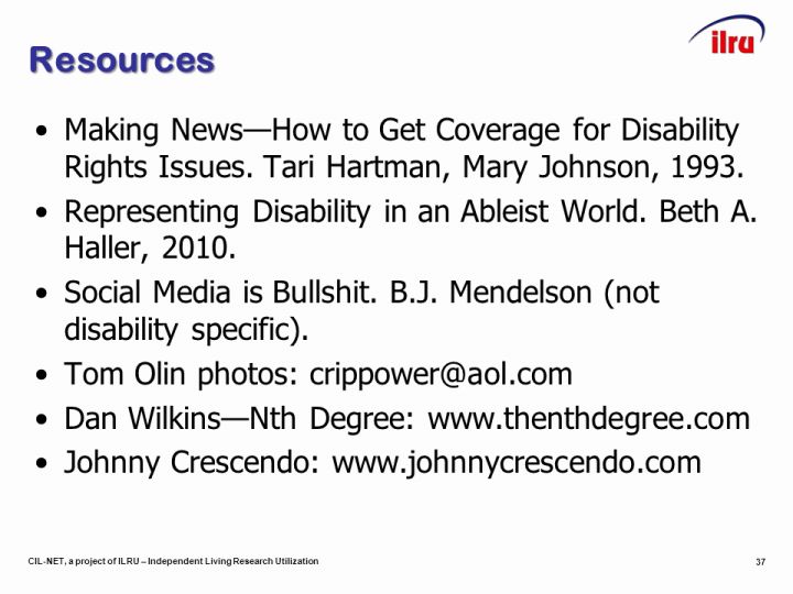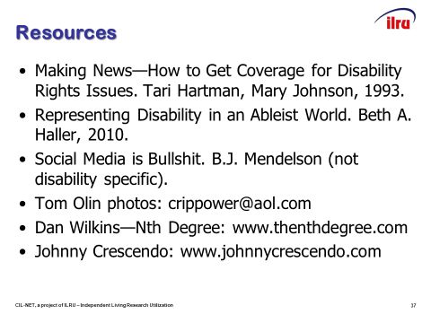 - Making News—How to Get Coverage for Disability Rights Issues. Tari Hartman, Mary Johnson, 1993.