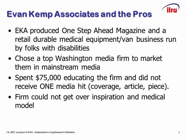 - EKA produced One Step Ahead Magazine and a retail durable medical equipment/van business run by folks with disabilities